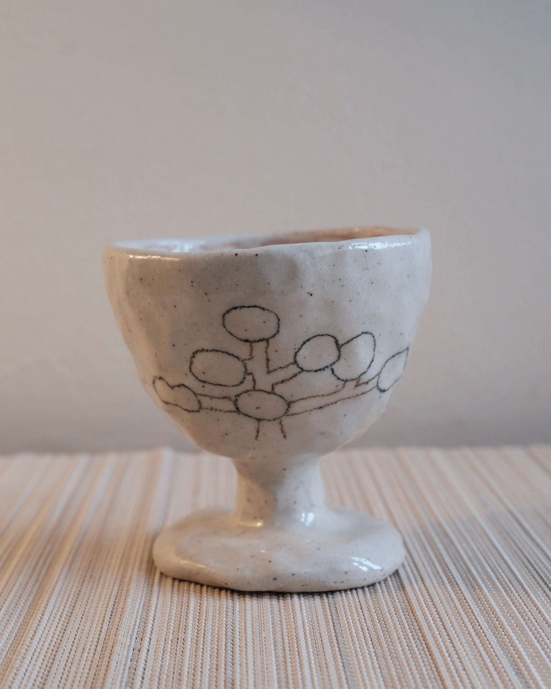 A Tree and a Man Ice Cream Bowl is made of stoneware clay and fired twice at a high temperature. It is decorated with a food-safe underglaze pencil. The design is inspired by simple Asian retro ceramic dinnerware. Kitsch and childlike, yet unique — a one-and-only design. Each piece is hand-built individually.