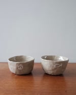 These bowls are crafted from stoneware clay and finished with a lead-free transparent glaze. Decorated with white underglaze and fired at high temperatures, each piece is individually hand-built.
