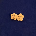 Cheeky Blossom Twin brooch is meticulously handcrafted from stoneware clay and adorned with vibrant underglaze. Fired twice for durability and brilliance, each blossom is lovingly made one at a time, ensuring every piece is truly unique. With their cheeky side-eye, these blossoms are sure to bring a smile and brighten your day!