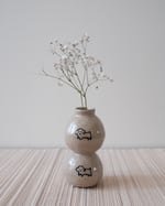 This vase is made of stoneware clay and finished with a lead-free transparent glaze inside and out, making it fully waterproof. It is decorated with underglaze pen and fired at a high temperature. Each piece is individually hand-built.