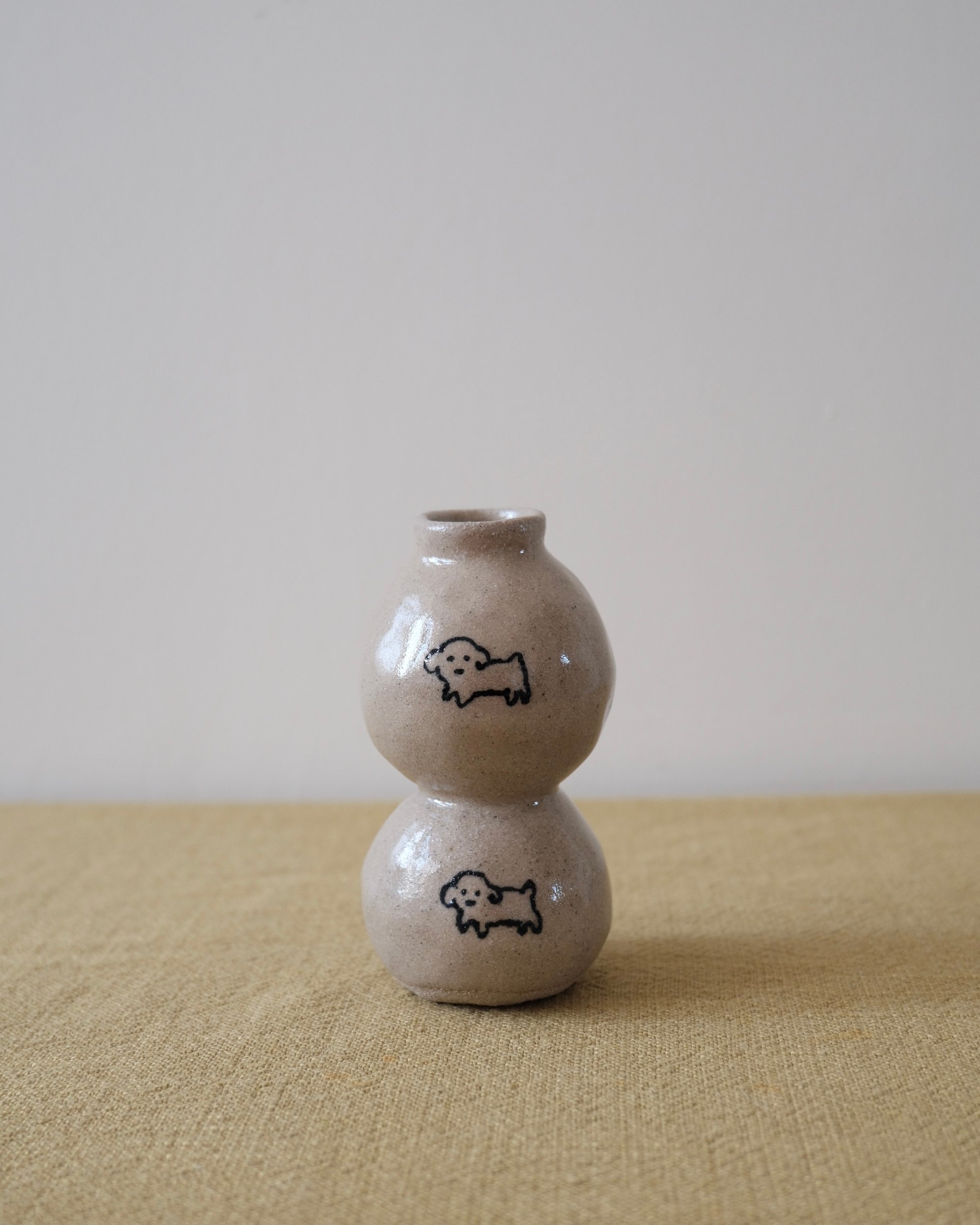 On the front, there are two twin dog with adorably moody look on each stack of vase.