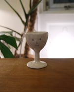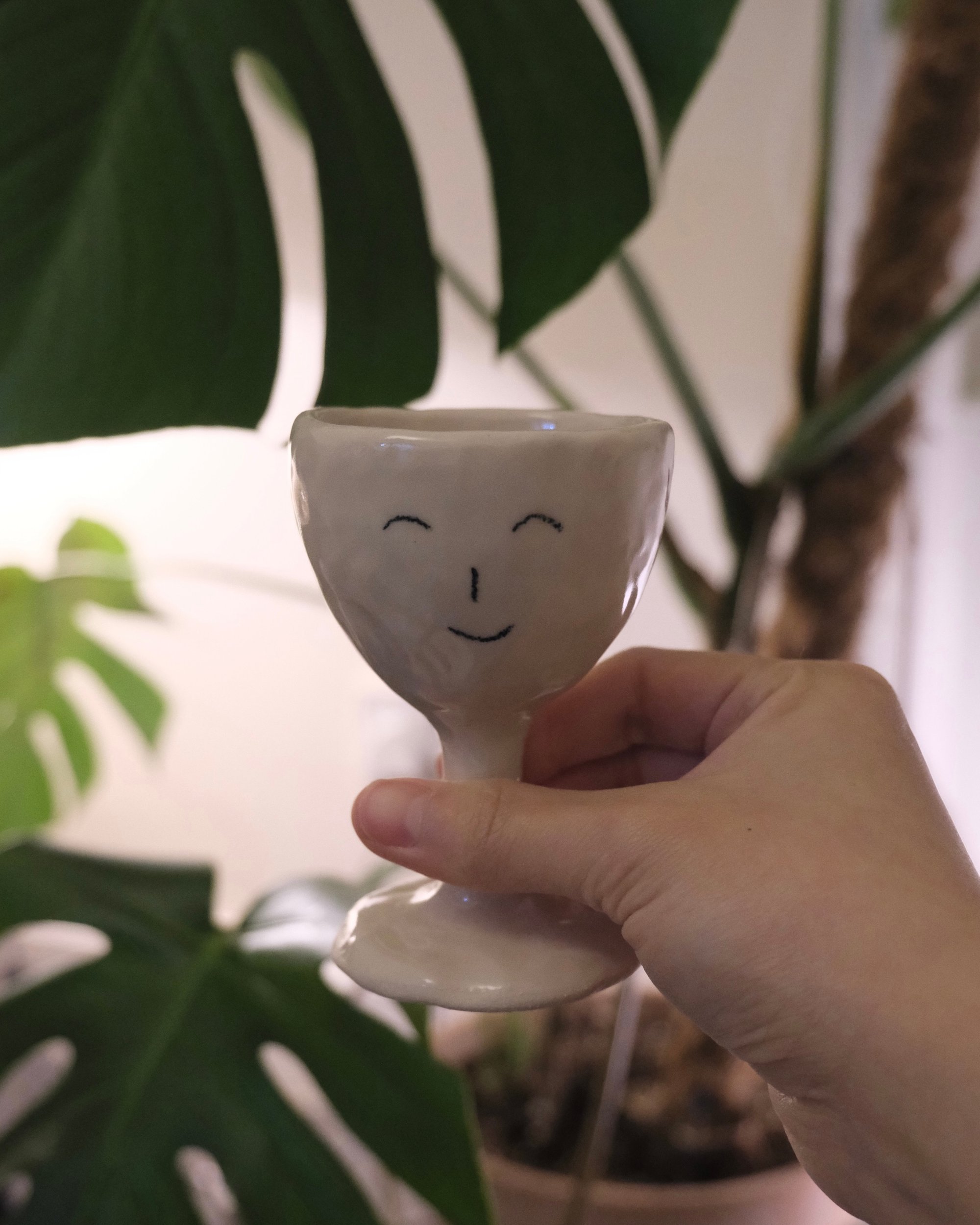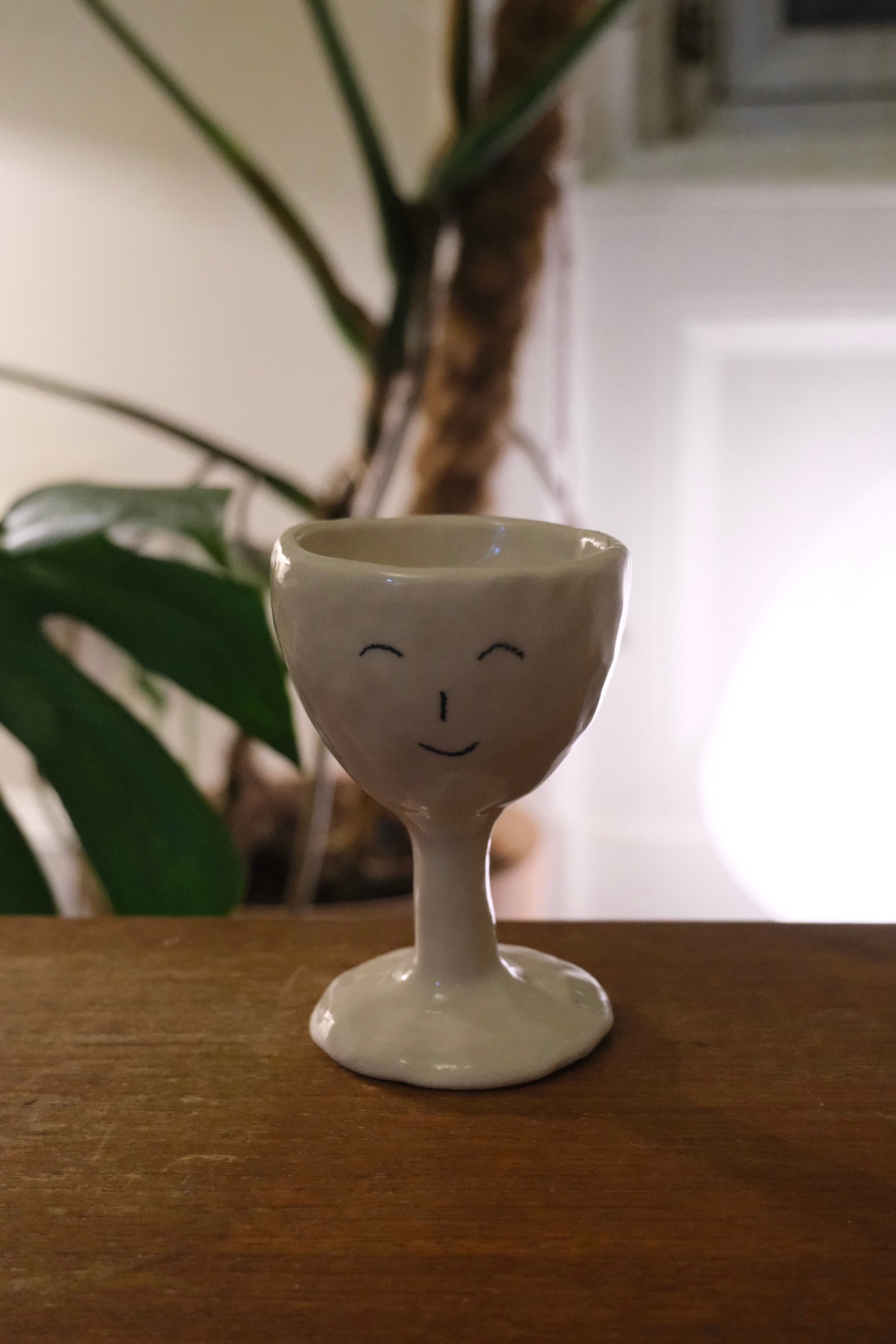 This goblet cub is made of stoneware clay with a lead-free transparent glaze. It is decorated with underglaze and fired at a high temperature. Each piece is individually crafted using hand-building techniques.