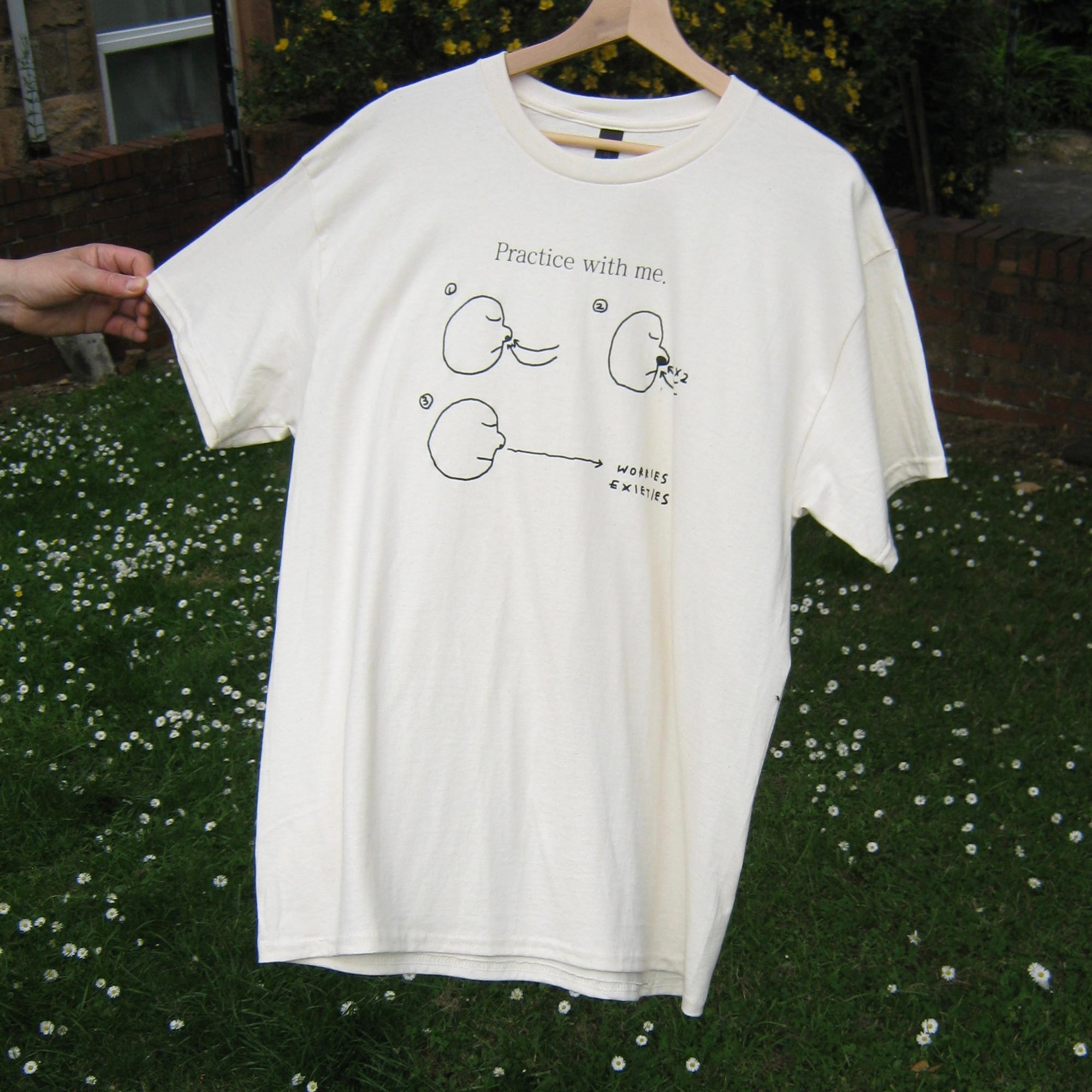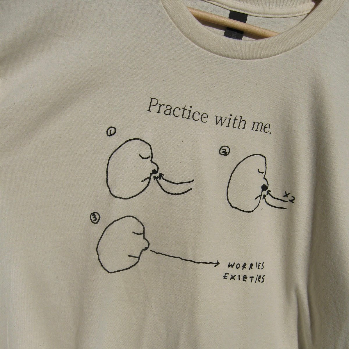 ‘Practice with me.’ t-shirt is printed on 100% natural color cotton using silk screen printing .