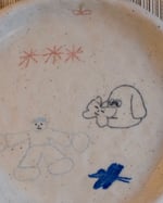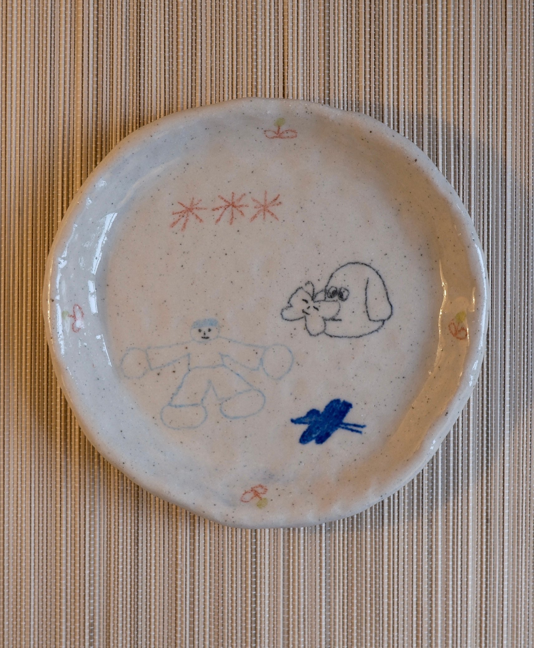 Sunshine Chunky Plate is made of stoneware clay and fired twice at a high temperature. It’s heavy and chunky hand built texture with free hand-drawing on the front of plate. It is decorated using a food-safe underglaze pencil. The design is inspired by nature and the happiness that surrounds the artist.